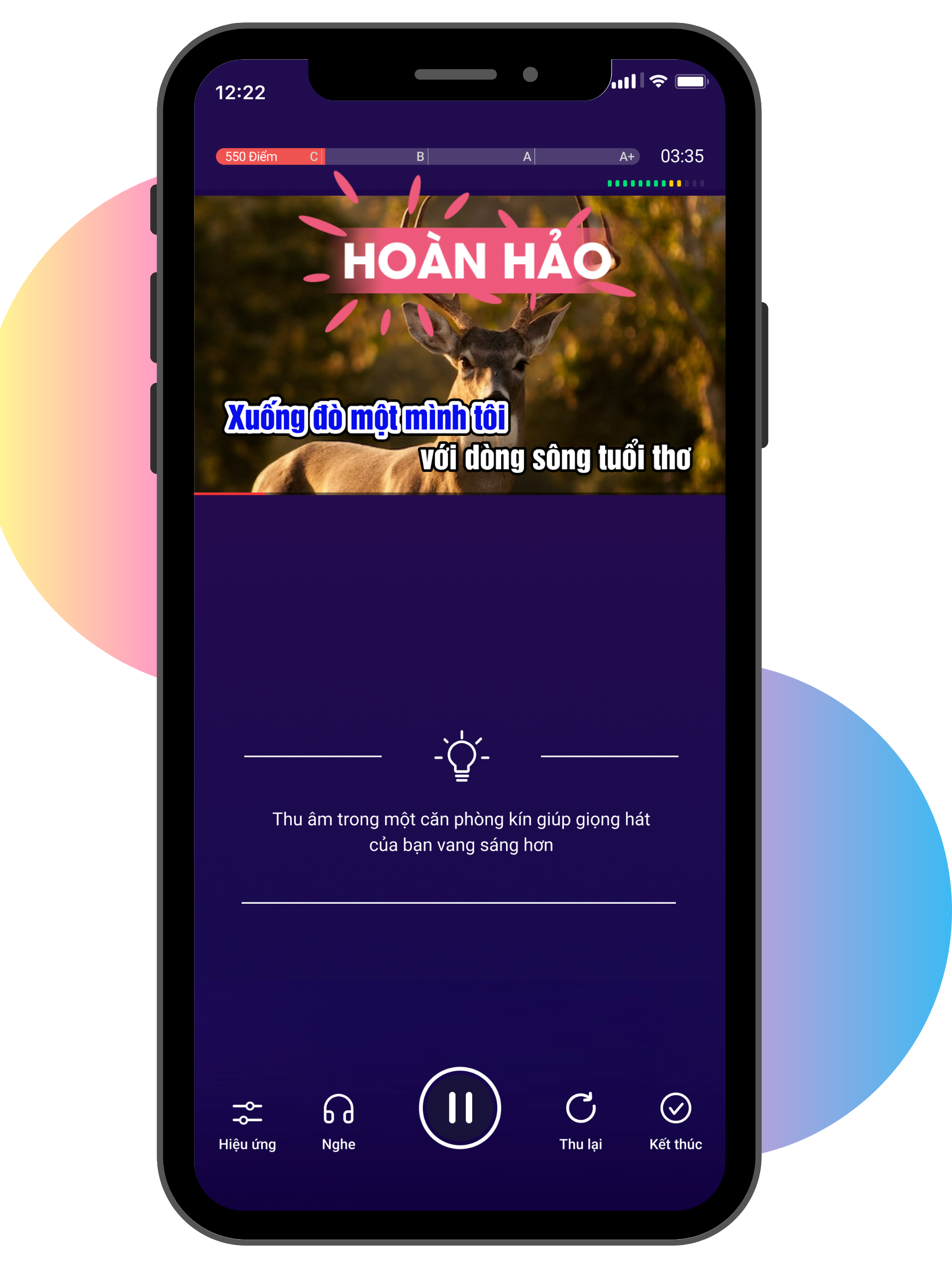 Kết thúc thu âm và xem điểm số của bạn |