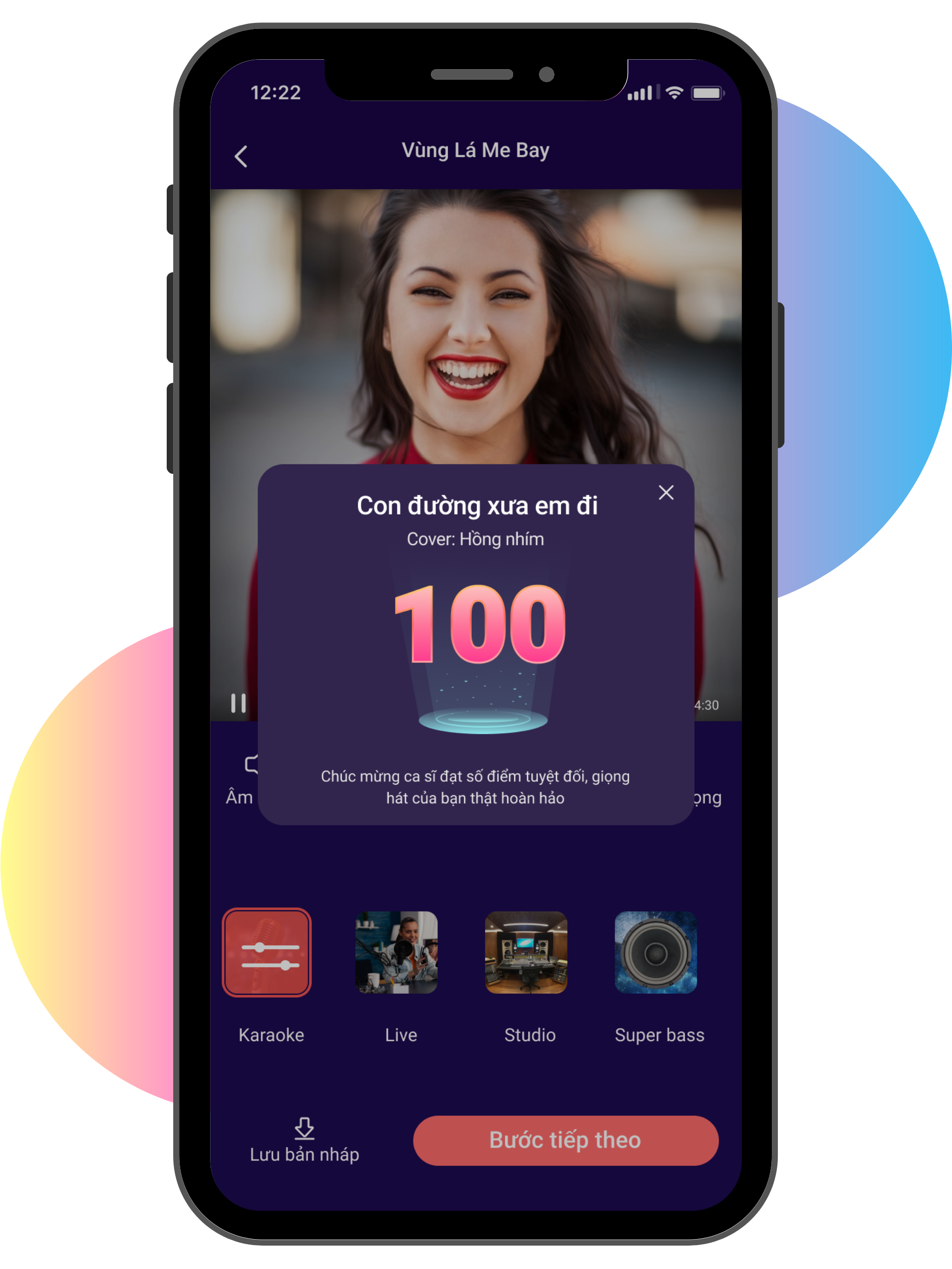 ✅ Bước 3: Hát hết mình và xem điểm số trực tiếp!