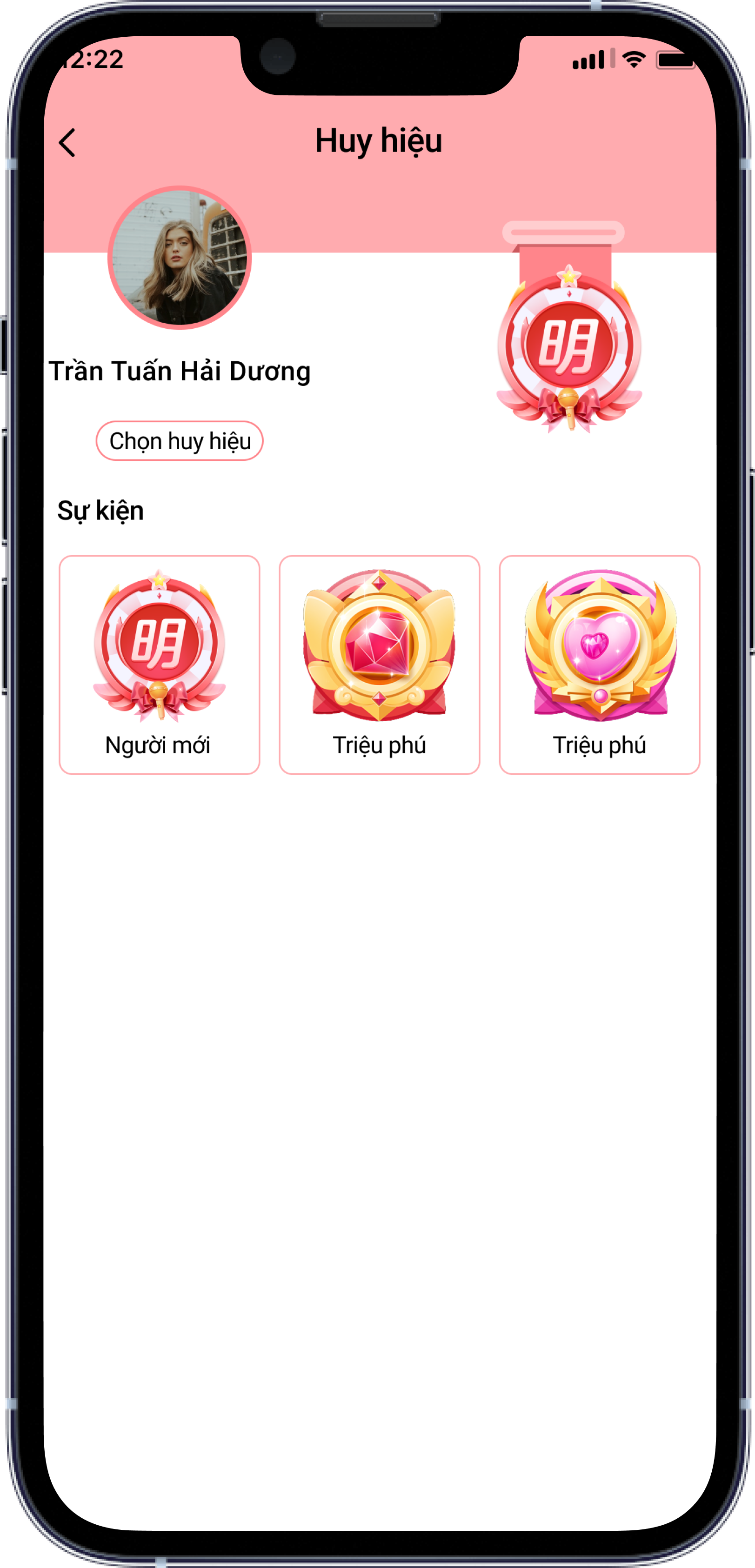 – Ghim huy hiệu: trong các huy hiệu đã đạt được, bạn được ghim 1 huy hiệu bất kì để hiển thị ở khung ghim huy hiệu và trang cá nhân.
