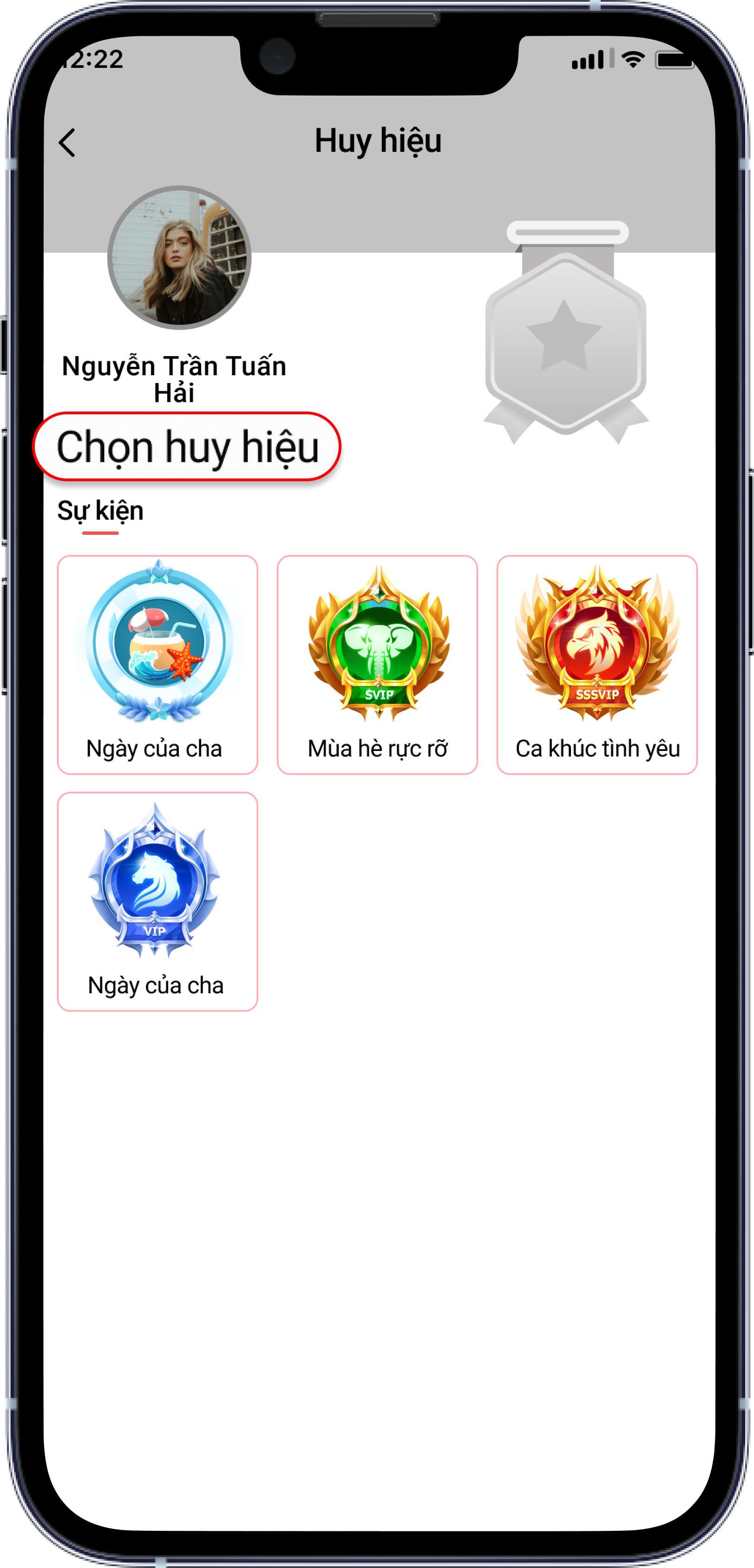 + Ở trang quản lí huy hiệu, nhấn vào “Chọn huy hiệu”.